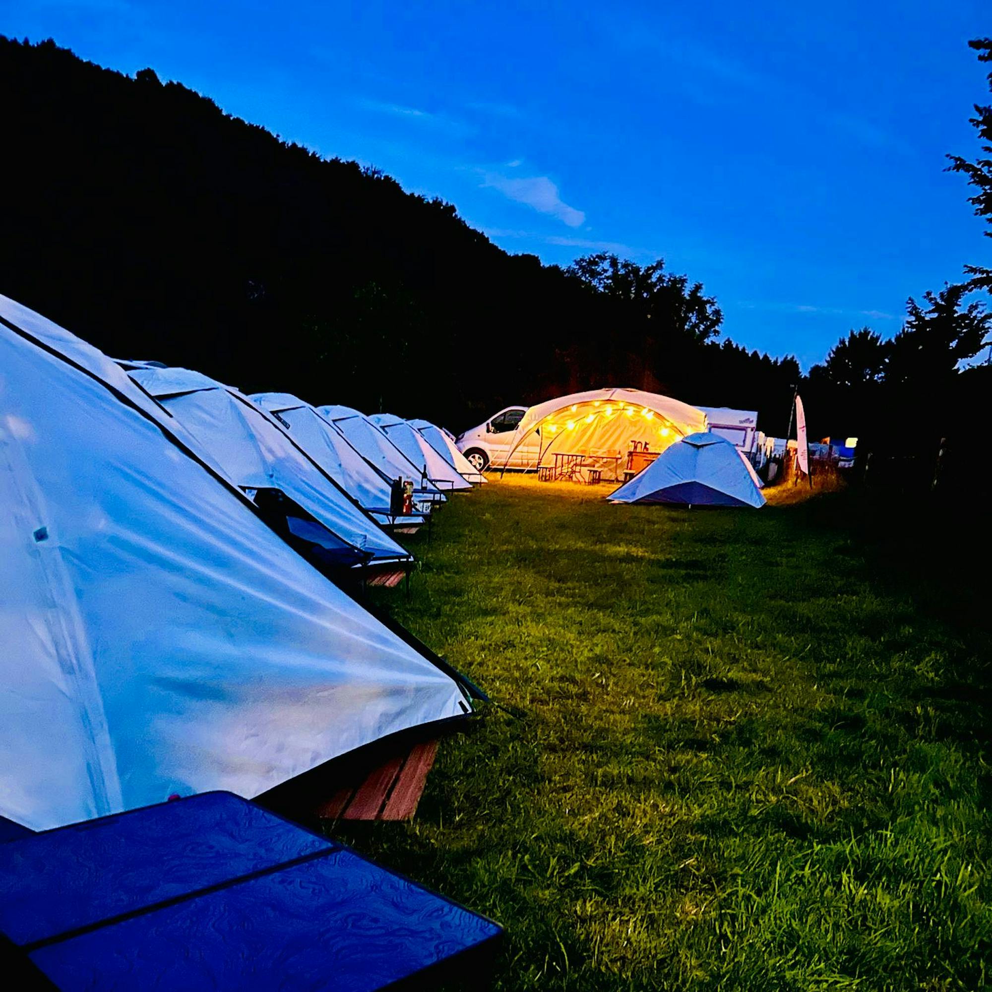 - Kampeermateriaal: tent, matje, lampje en slaapzak, tafel en stoel (ook bij ons te huur)